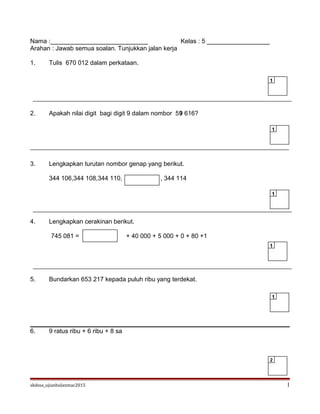 Soalan Matematik Tahun 5 Ujian 1 Bulan Mac 2017 Pdf